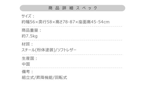 材質:スチール(粉体塗装) ソフトレザー
