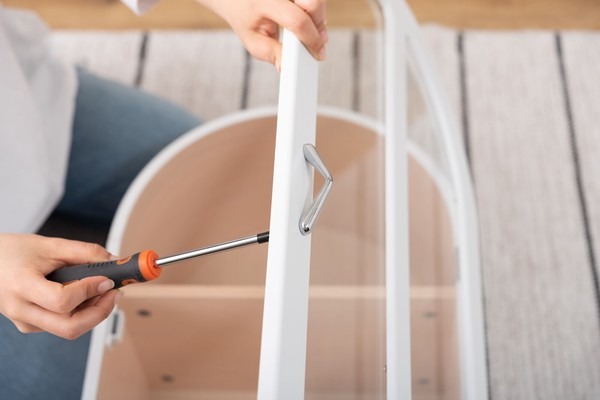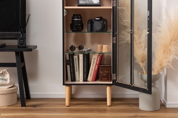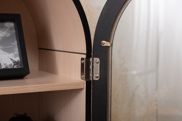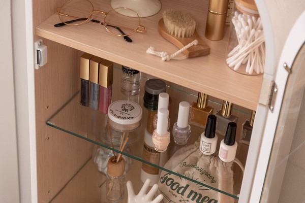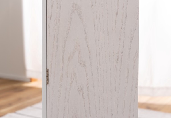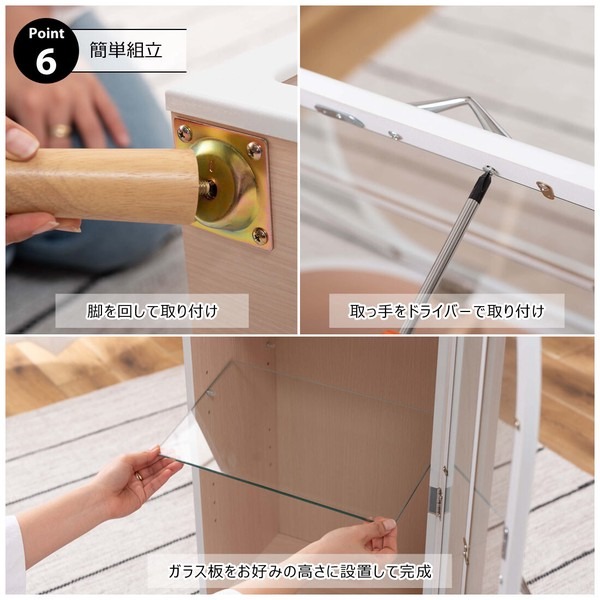 材質:天然木化粧合板(オーク) ラッカー塗装、合成樹脂化粧繊維板 5mm強化ガラス
