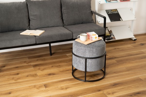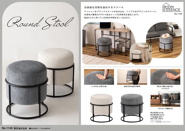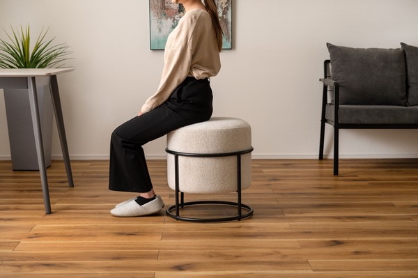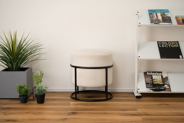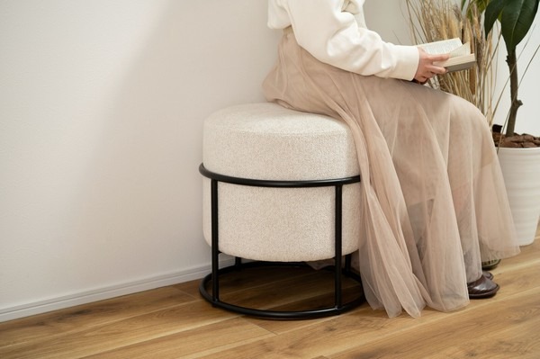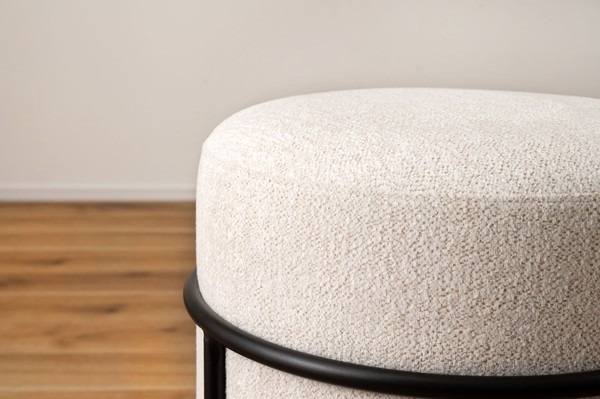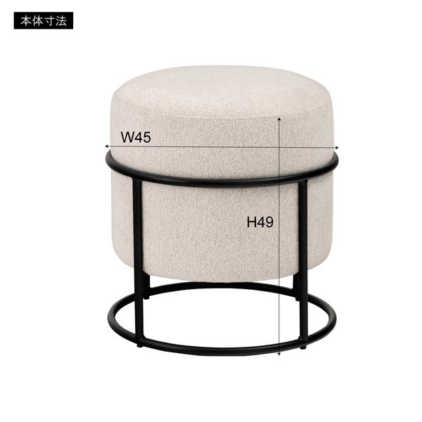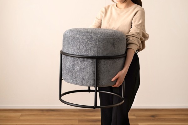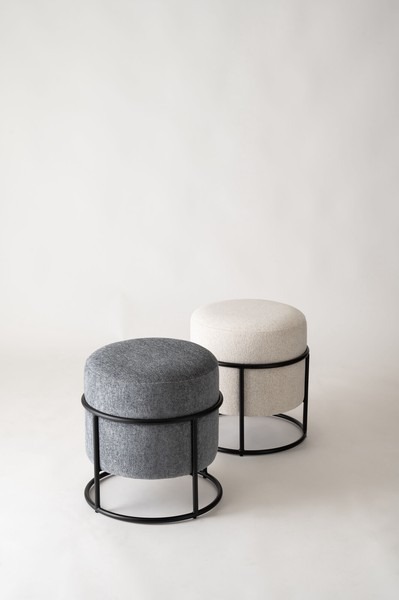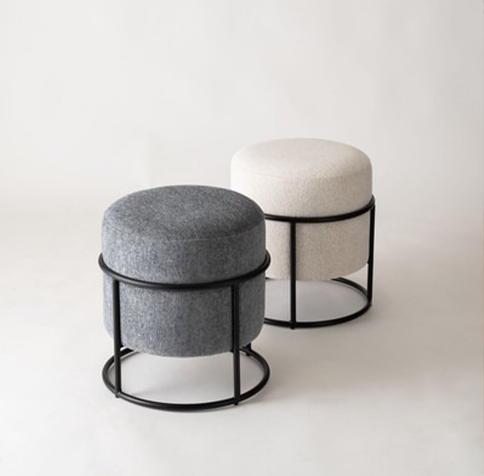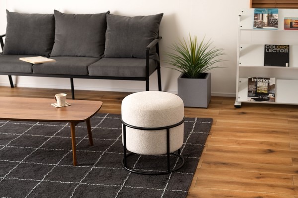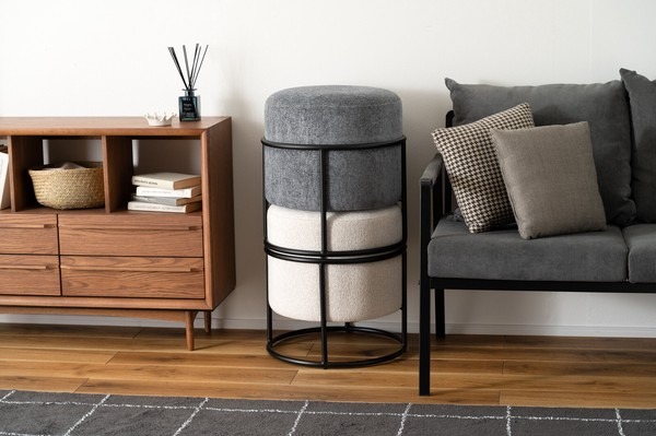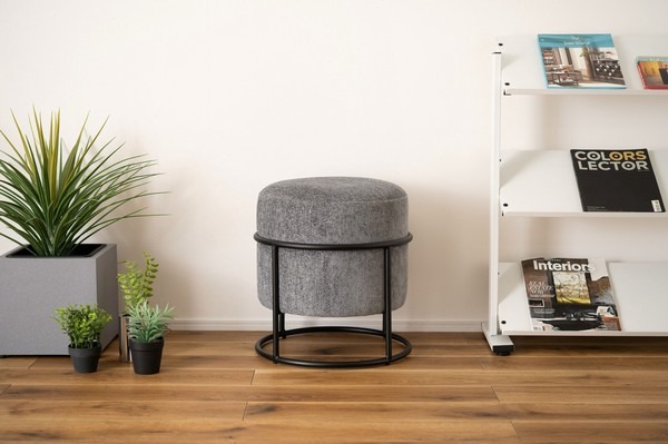 ・お洒落な空間を演出するスツール ・クッションをブラックスチールが包み込む、シンプルなデザインのスツール。 ・お部屋に馴染みやすい2色はシックな雰囲気を演出します。 ・地面から少し浮いている形状が空間を美しく見せます。