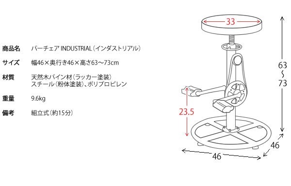 ●商品サイズ:約幅46×奥行46×高さ63〜73cm