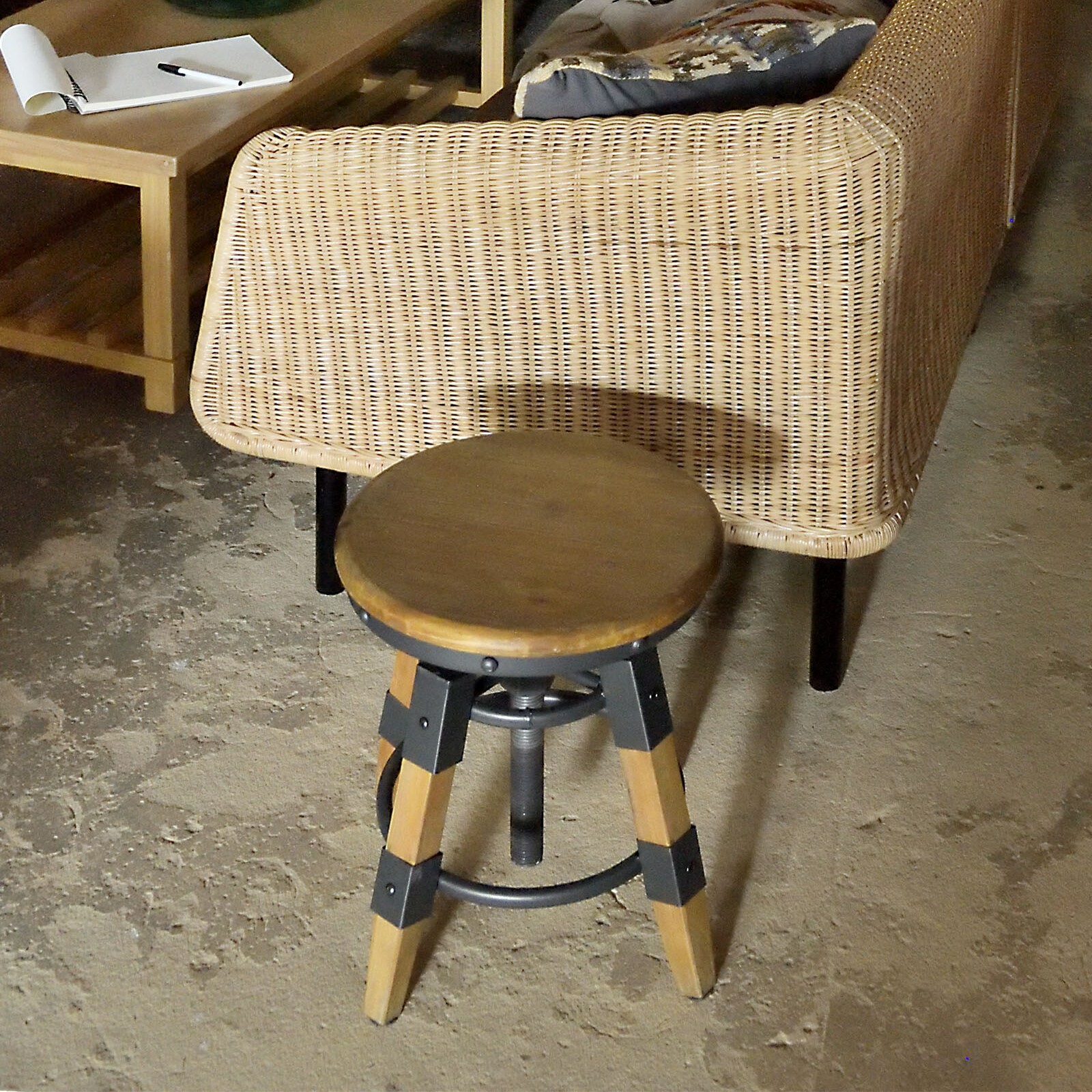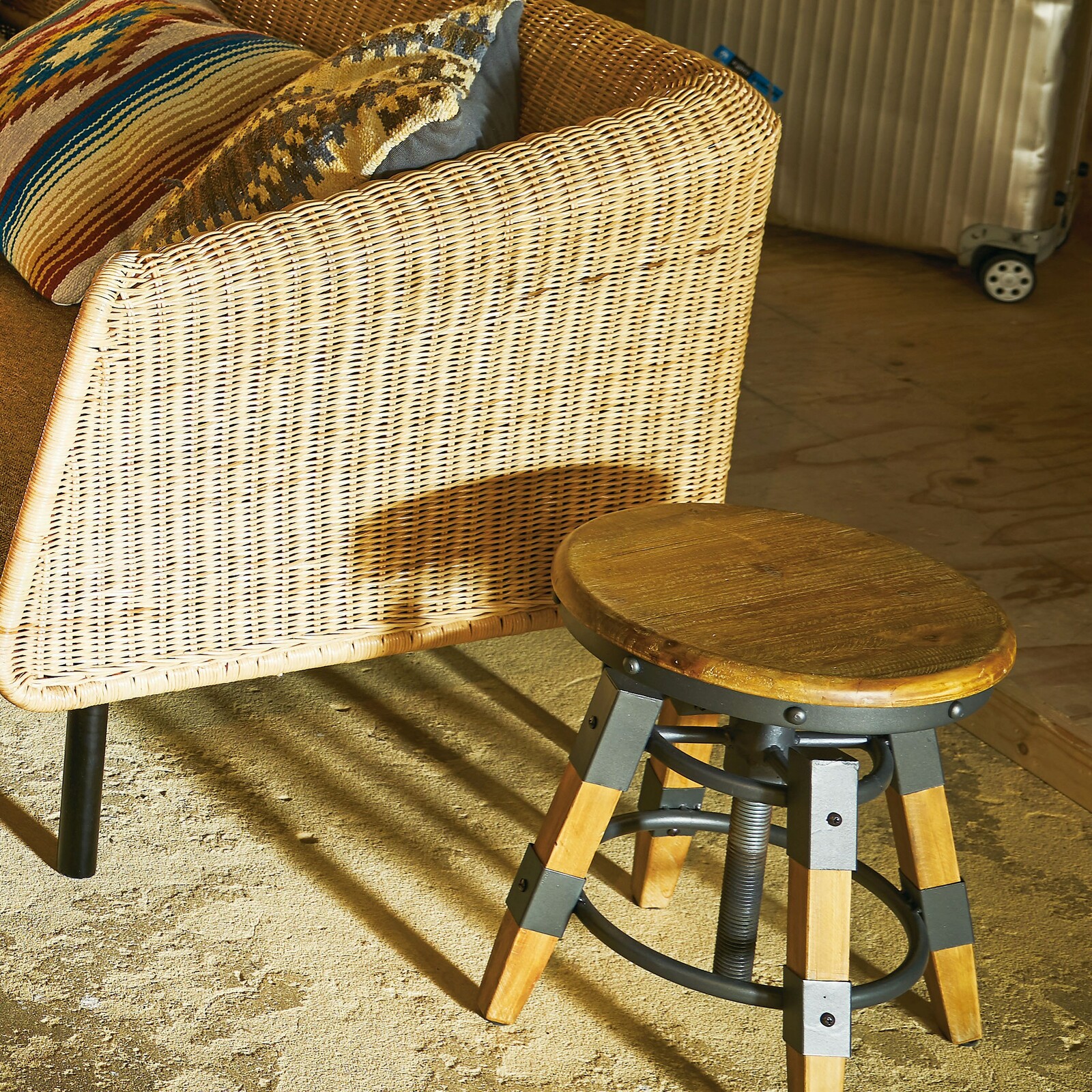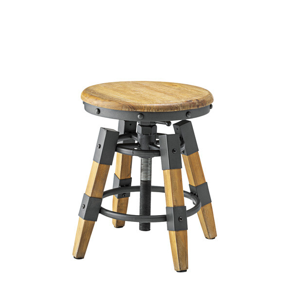 可動域の好きな高さで座面を固定できるカペルスツール。 座面を回転し高さ調節を行うので、微妙な高さ調節も可能です。 素朴な風合いの木部と無骨なスチール部分のバランス、高いデザイン性でさまざまな場所に選ばれています。
